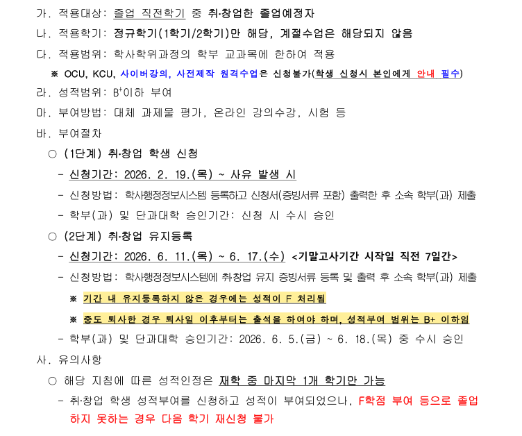2026학년도 1학기 취·창업 학생 성적부여 신청 및 유지등록 안내