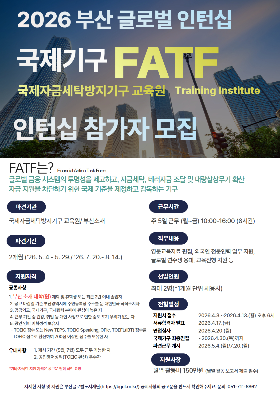 | 「2026 부산 글로벌 인턴십」참가자 모집( 국제기구 FATF, UNFAO) | |||